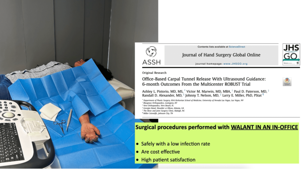 Recent studies have increasingly shown the use of ultrasound as effective to evaluate and manage patients with peripheral nerve entrapment. Diagnostic ultrasound has been shown to be as accurate as EMG/NCS with the diagnosis of carpal tunnel syndrome. Furthermore, the dynamic nature of ultrasound allows the provider to identify impingement that is related to motion, that may otherwise go missed on imaging or nerve testing (Fig. 1).